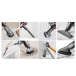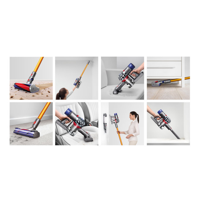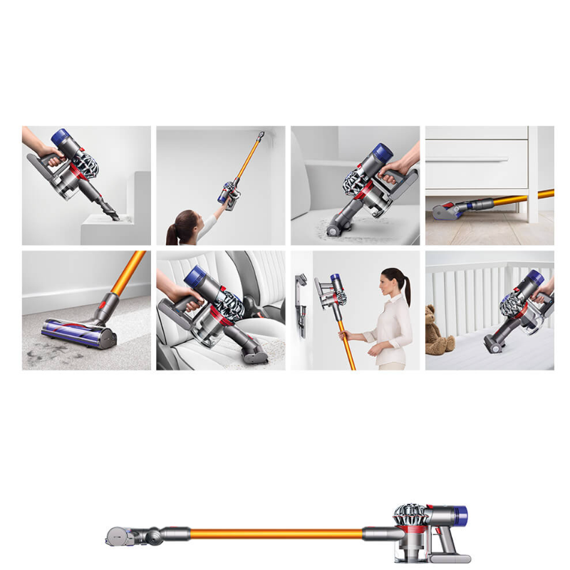 Kao i svi Dyson bežični uređaji Dyson V8 usisavač nudi raznovrsnost u upotrebi omogućavajući vam da čistite na visokim, teško dostupnim, niskim mjestima i svugdje između. No, postoje neke razlike između Dyson V8 i V6 Absolute usisavača. Vrijeme rada je do 40 minuta, mehanizam za higijensko izbacivanje prašine i 50% je tiši.