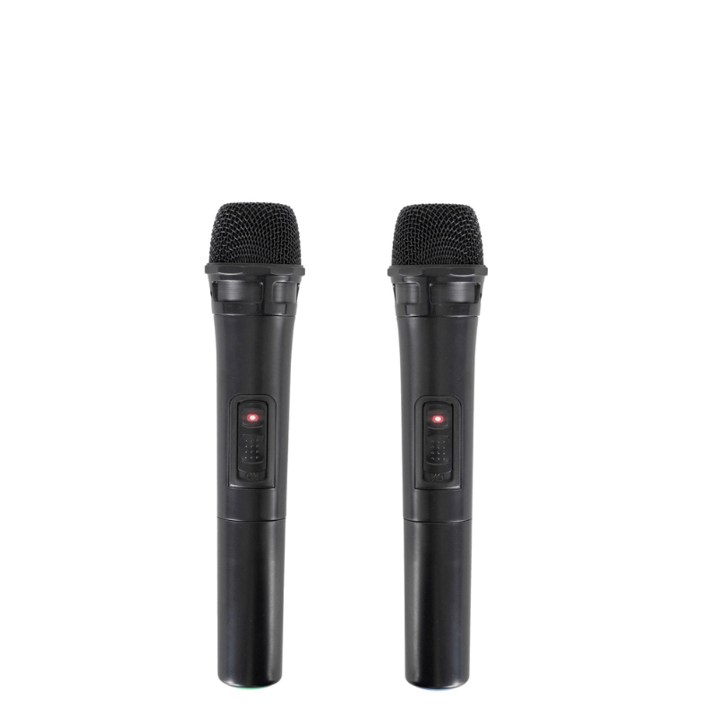 5-pojasni grafički EQ, 6 vrsta EQ glazbeni stilova, visoki / niski, 2 kom. bežičnih mikrofona u pakiranju, napajanje mikrofona 2 + 2 x AA 1.5 V baterija ( nisu uključene u pakiranje ), dimenzije 360/270 x 880 x 360 mm, težina 19 kg, materijal izrade kućišta MDF