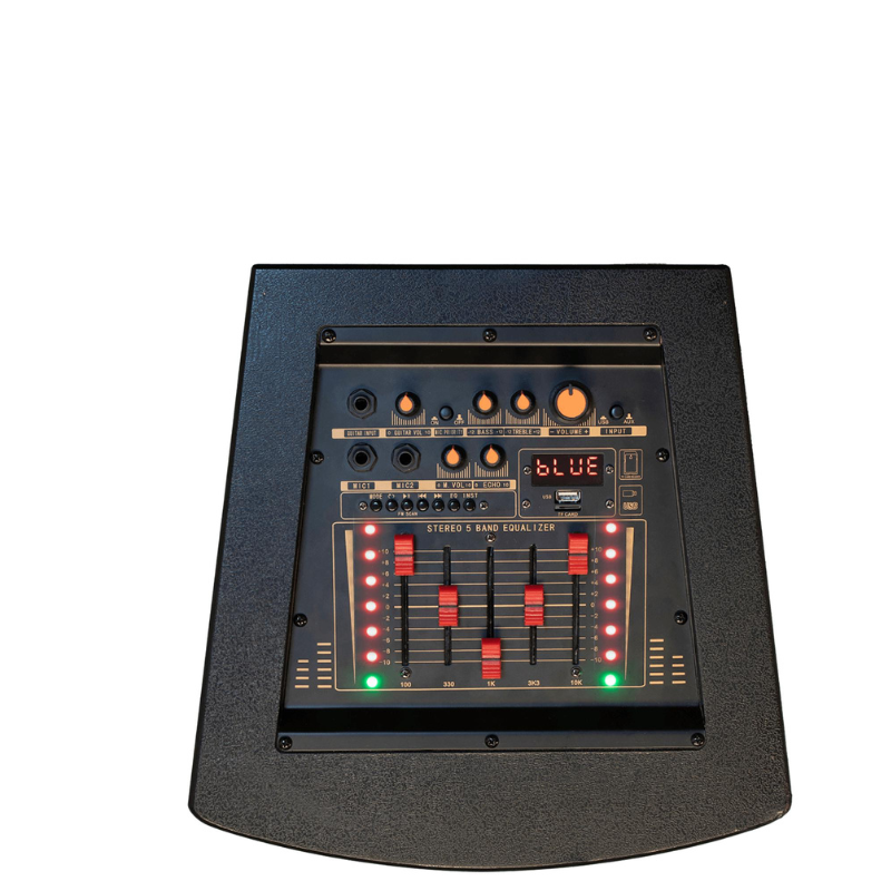 Prenosivi multimedijalni zvučnik, zvučnici: 2 x 10” (250 mm) bass, 1 x 1” (25.4 mm) visokotonac, snaga 250 / 150 W, Bluetooth bežična veza, MP3 player, reprodukcija sa USB-a ili SD memorijske kartice, AUX ulaz 2 x RCA, ulaz za mikrofon( Ø 6.3 mm) x 2, KARAOKE. Svjetlosni efekti, posebno promjenjivi svjetlosni LED efekti, LED indikator izlazne snage.