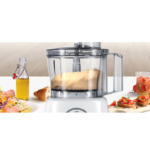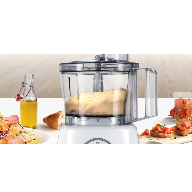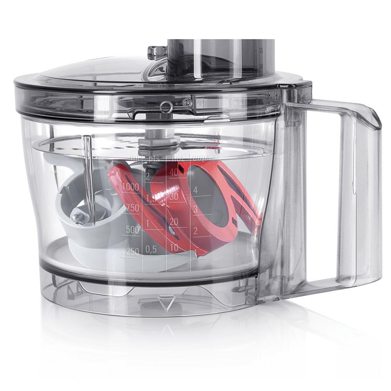 Transparentna zdjela za miješanje kapaciteta 2.3 i za 500 g brašna + sastojci (najviše 0.8 kg smjese za tijesto) uključujući poklopac sa lijevkom i nastavak za punjenje