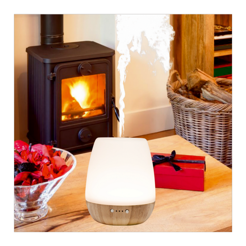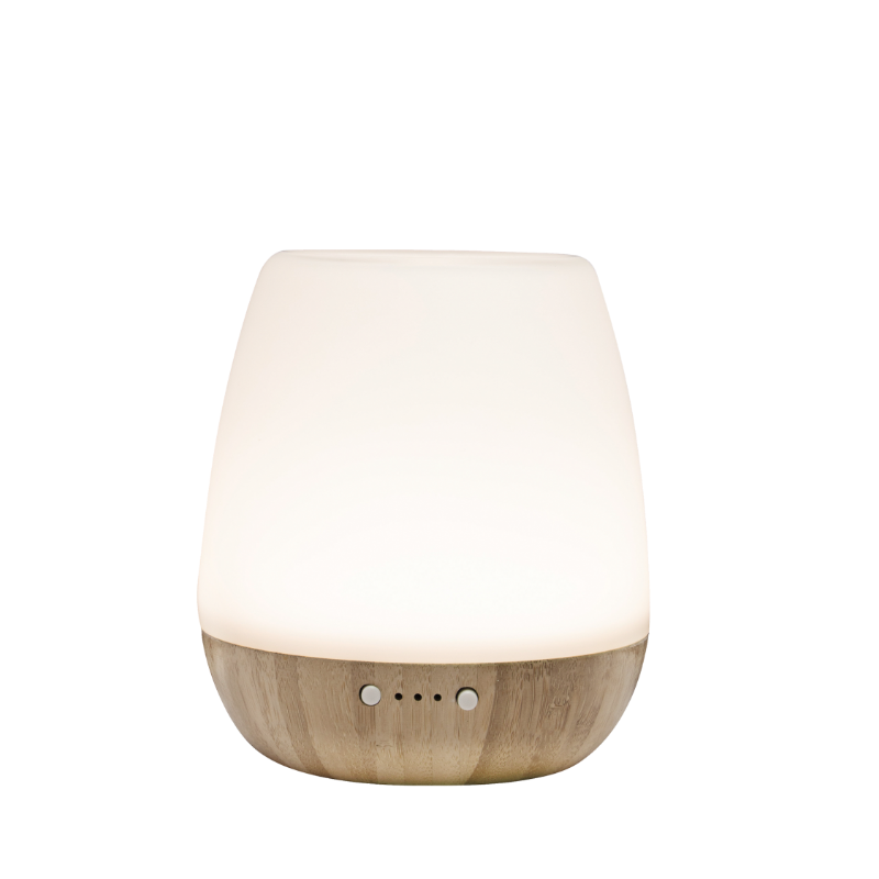 Ultrazvučna ukrasna lampa, aroma raspršivač sa svjetlom, materijal izrade: baza – bambus, opal staklo – tijelo, neprekidno ili povremeno vlaženje ( 30 sec ON / 30 sec OFF ), timer za isključenje 1 / 3 / 8 sati, dvije postavke svjetlosti: stalno svjetlo i blago pulsirajuće svjetlo sa neprekidnim blijeđenjem, , “sleep” funkcija 30 minuta, spremnik vode 180ml, mogućnost dodavanja mirisnih ulja za ugodniju atmosferu, ovlaživanje 15 – 20 ml/h